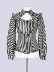 5位.IMVAL / Lace Frill Leather Dress [STRIPE]
