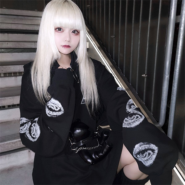 【即納】MALICIOUS.X / Sanpaku sleeve eyes hoodie[black](301797)