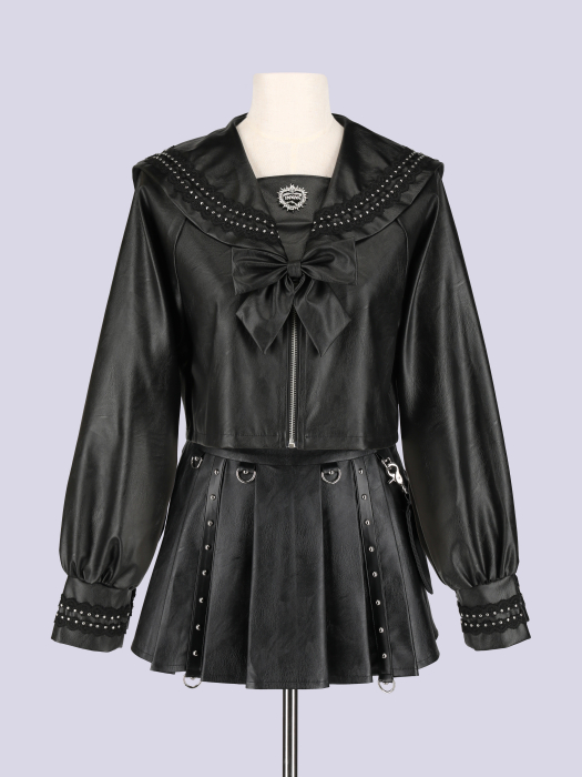 クラシカルなセーラーカラーを、ハードなレザーで再構築した