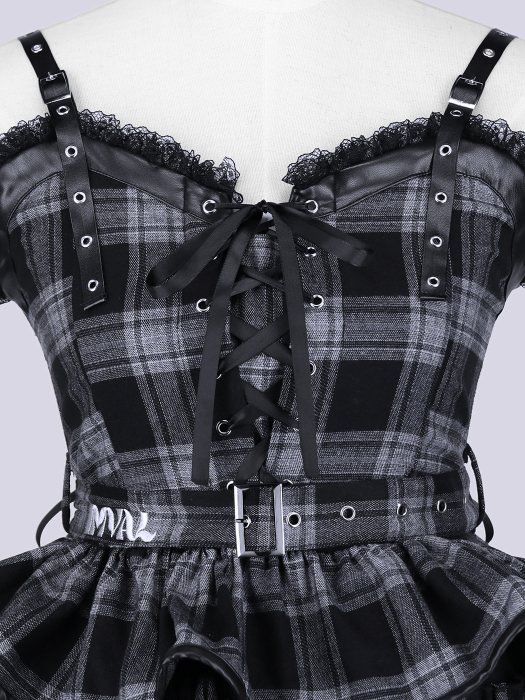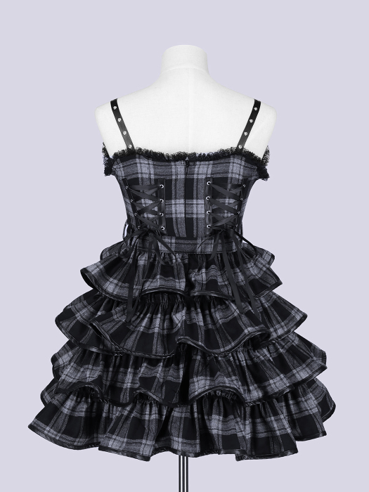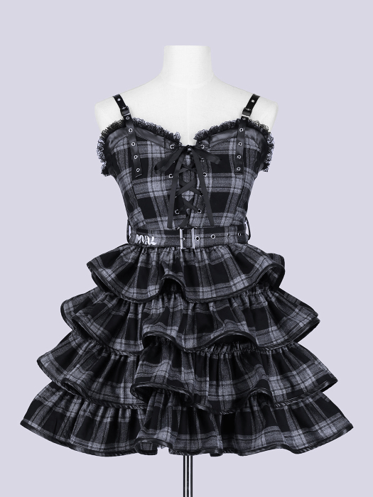 多段フリルのボリュームとレースアップが華やかさを引き立て、どの角度から見ても主役級の存在感に。