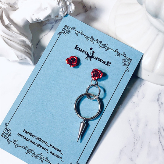 kuro_kawaE / 薔薇と棘のピアス 両耳用[赤]