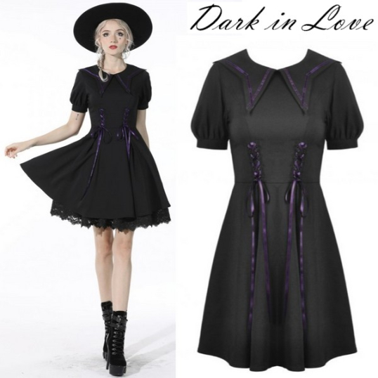 【セール】Dark in Love / Magic girl purple line trims mini dress ワンピース(DW526)