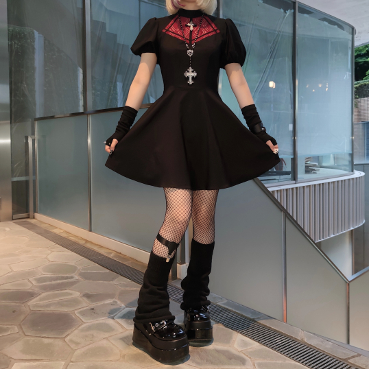 【セール】Dark in Love / Gothic doll lace red in black dress[DW645]