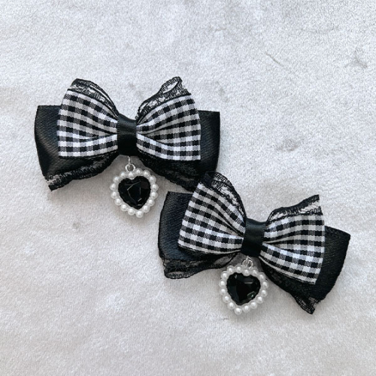 ののりぼん / チャーム付きミニリボン ブラック×ギンガムチェック