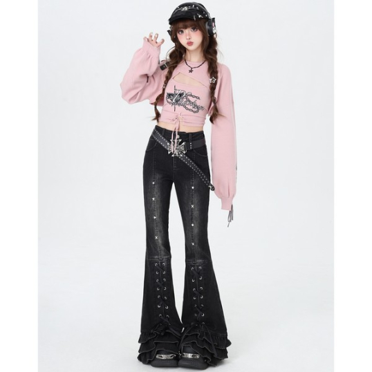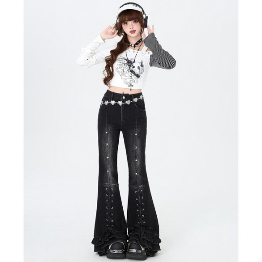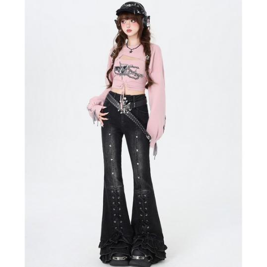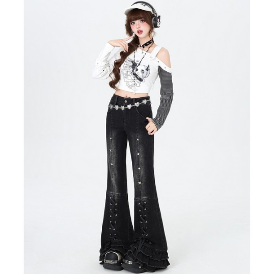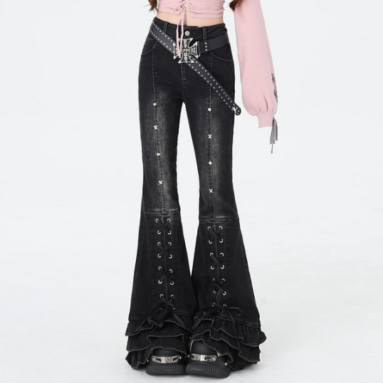 SELECT / [CRAZYGIRL]ブラックデニムベルボトム