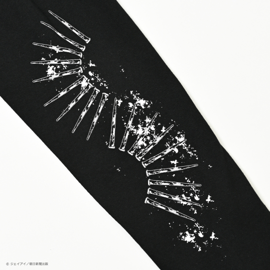 袖にも五寸釘のグラフィックを施し、インパクト抜群の仕上がりに。