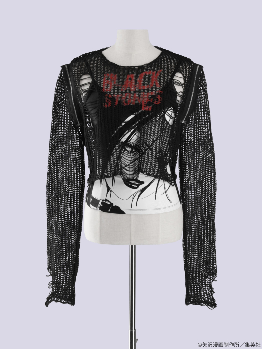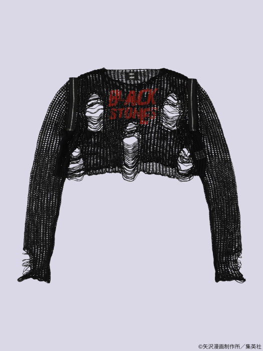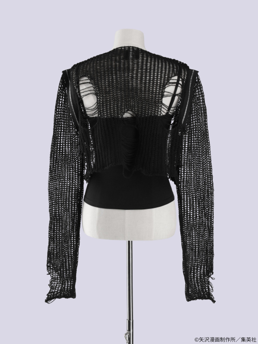 繊細なメッシュニットに、アームのジップデザインやほつれ加工を施し、美しさをリアルに再現しました。