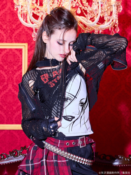 インナーのキャミソールには、主人公・ナナの印象的な表情を線画で描いたグラフィックプリントをオン。