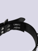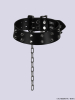 厚みのあるチョーカーに無骨なバックルとチェーンを組み合わせ、