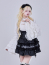 胸元の十字架カッティングとフロントフリルが華やかさを引き立て、背中の編み上げでシルエット調整も可能。