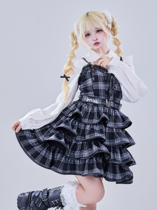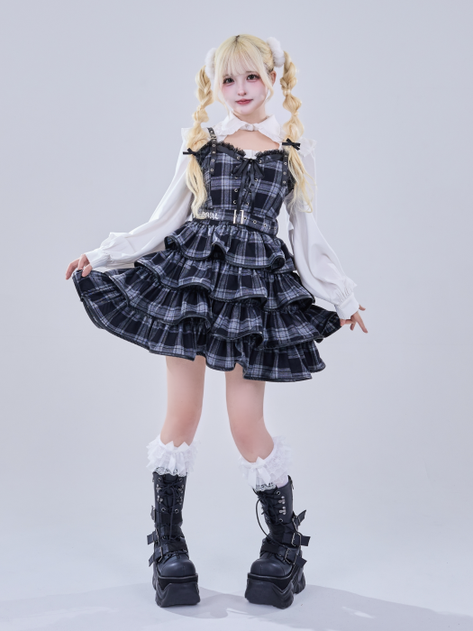 多段フリルのボリュームとレースアップが華やかさを引き立て、どの角度から見ても主役級の存在感に。