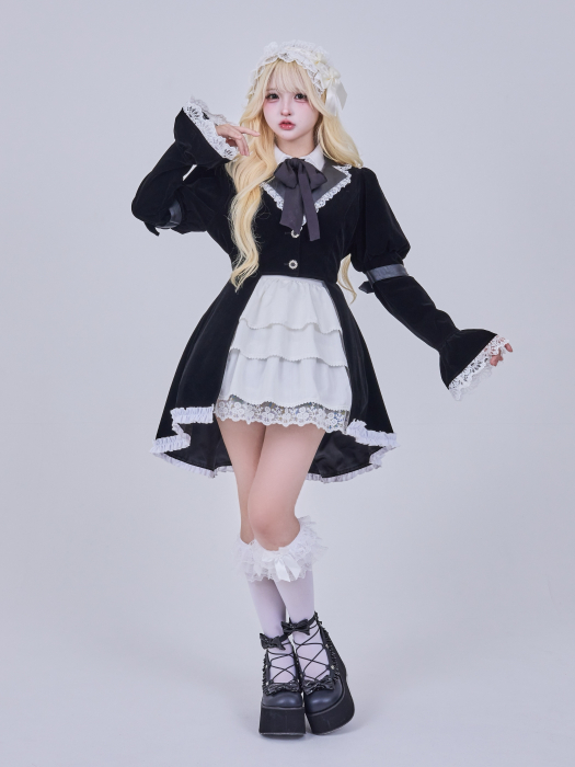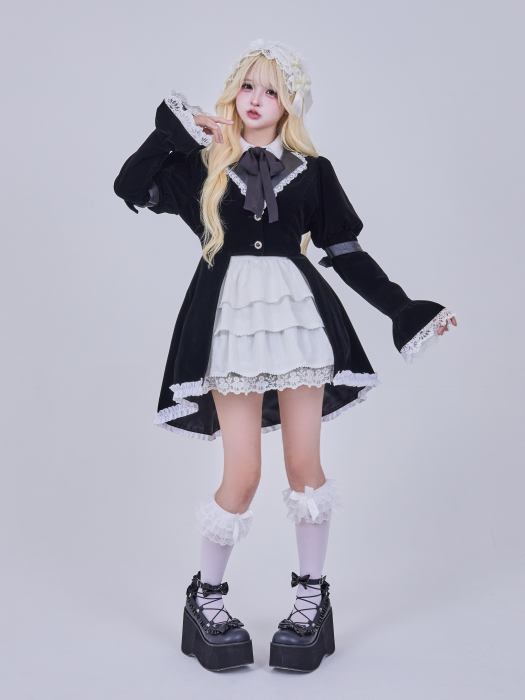 重厚感のあるベルベットにレースとPUを組み合わせた、華やかなゴシックジャケット。
