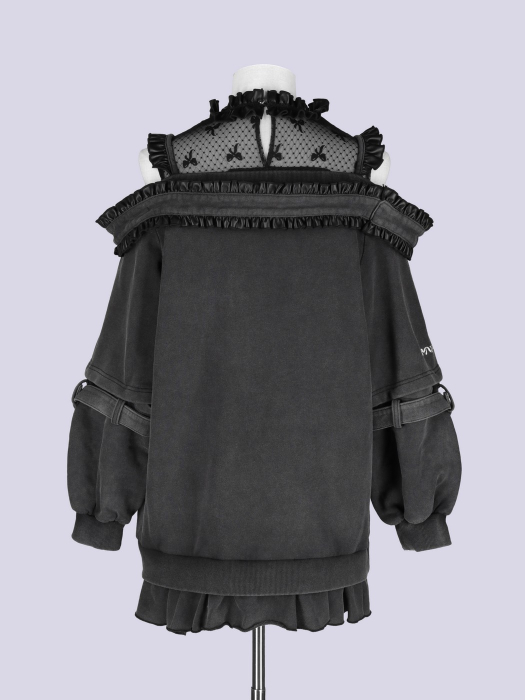 首元はフリルをあしらったハイネック仕様、