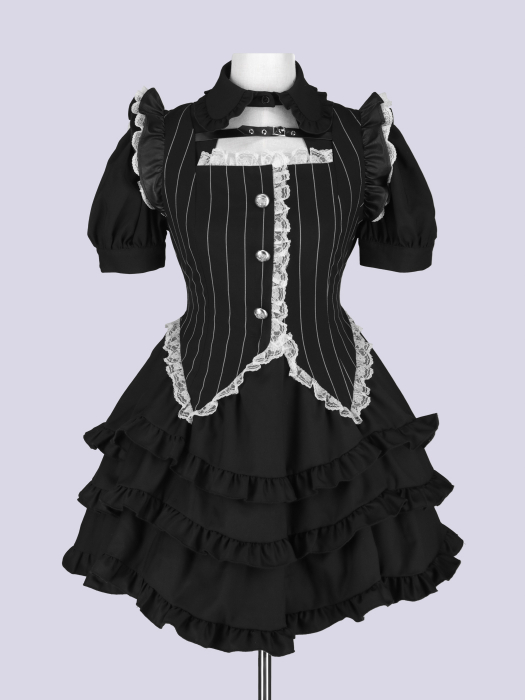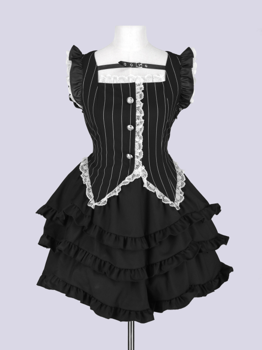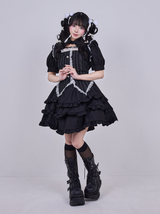 クラシカルなベストデザインと、贅沢に重ねたフリルスカートが印象的なレイヤードワンピース。