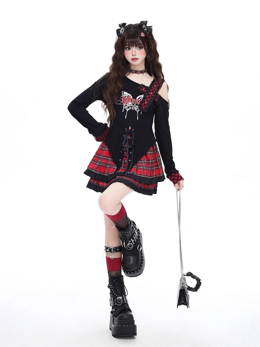 SELECT / [CRAZYGIRL]アシンメトリーオフショルダートップス[RED]