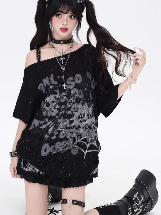 SELECT / [CRAZYGIRL]アシンメトリーオフショルダーTEE