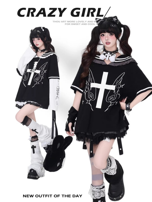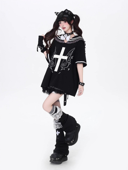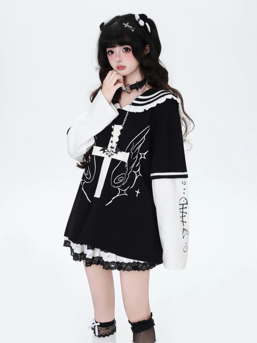 SELECT / [CRAZYGIRL]セーラーカラー長袖TEE [袖取り外し可]