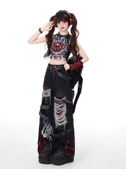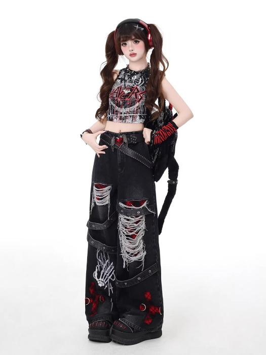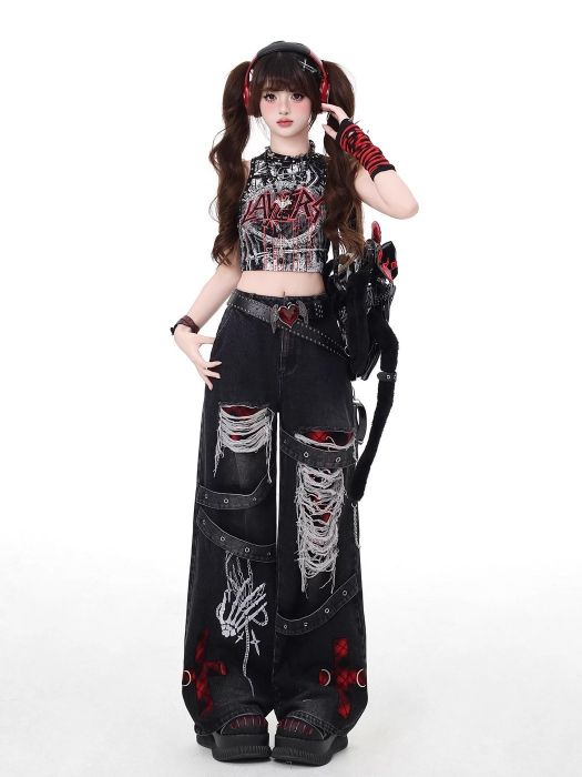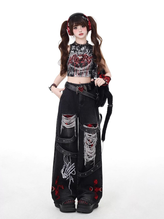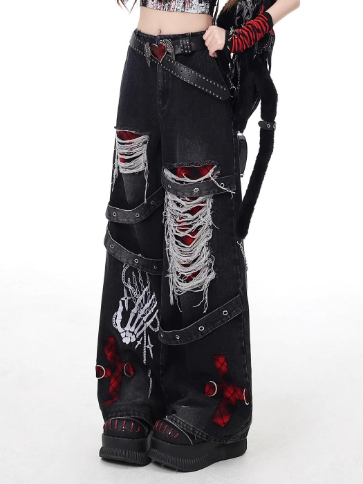 SELECT / [CRAZYGIRL]ダメージ加工デニムパンツ [RED]