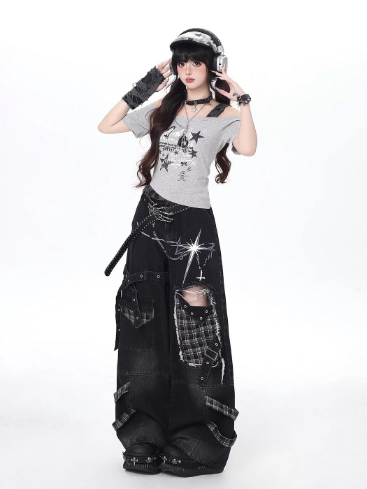 SELECT / [CRAZYGIRL]ゆったりデニムパンツ [GRY]