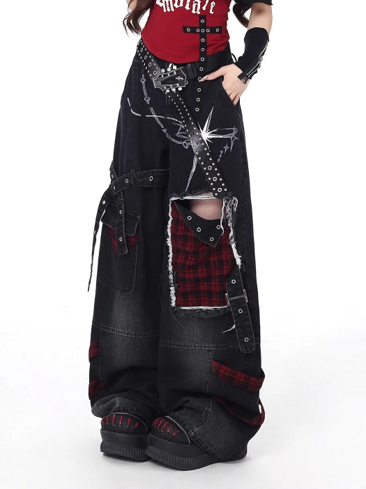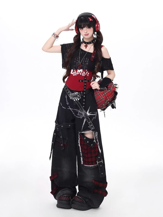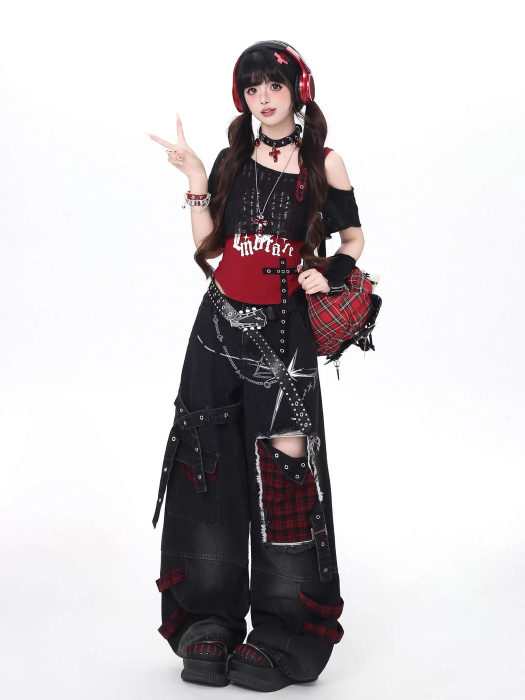 SELECT / [CRAZYGIRL]ゆったりデニムパンツ [RED]