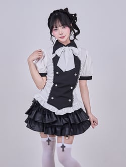 【即納】DEPEN DOLL / doll pleats patchwork skirt black(DP015)